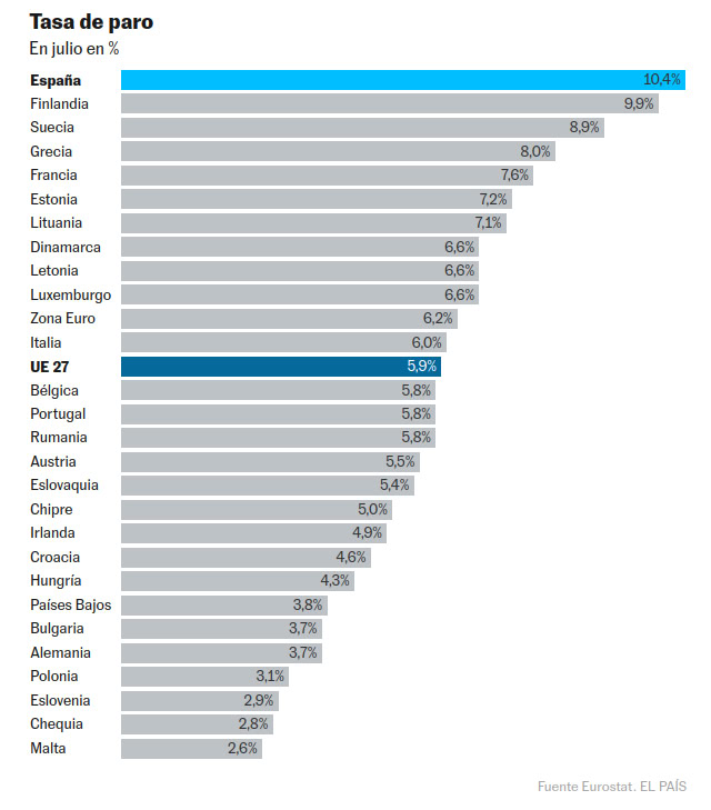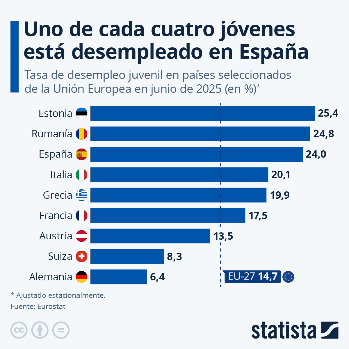 Comparativa Tasa de paro juvenil España con Resto de Europa